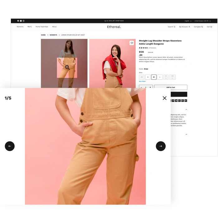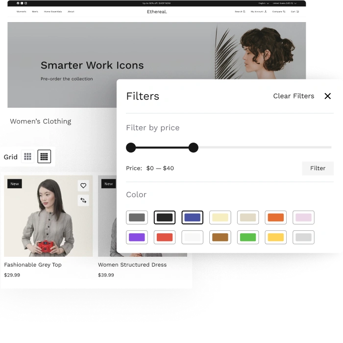 Discover the essential tools that make Ethereal the perfect fashion commerce theme. From design to performance, every feature is built to impress.