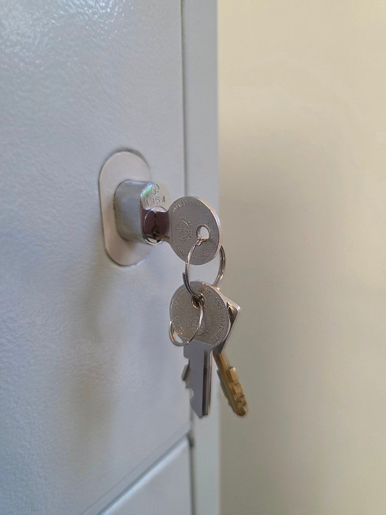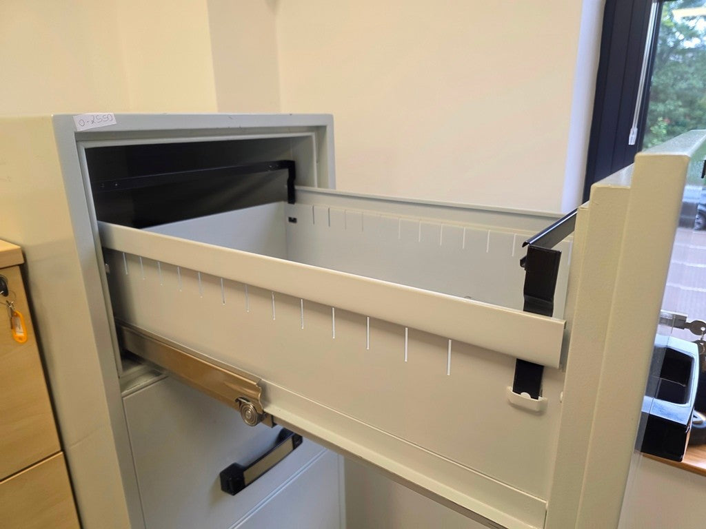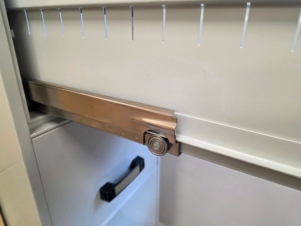 A robust, space-efficient vertical filing cabinet that keeps documents organised and secure in professional environments.